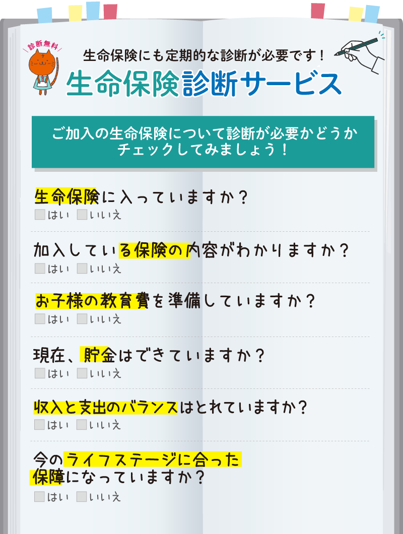 生命保険診断はご加入の生命保険証券(または保障内容のわかるもの)をもとに行います。